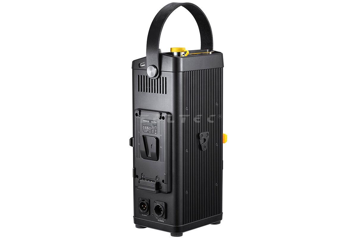 Das Godox KNOWLED M600Bi LED Light ist eine dimmbare Bi-Color (2.800 K - 6.500 K) COB LED Leuchte mit einer maximalen Leistungsaufnahme von 730 W und einer externen Steuereinheit. Die Leuchte bietet mit Reflektor eine Lichtintensität von bis zu 17.500 Lux auf drei Metern (bei 5.600 K), bzw. mit der optional verfügbaren Godox FLS10 Fresnel-Linse bis zu 40.100 Lux auf drei Metern. Steuern lässt sich die KNOWLED M600Bi über die separate Steuerbox, per Bluetooth über die Godox Light App, per DMX. Die Stromversorgung erfolgt per Netzstrom oder optional über V-Mount Akkus.