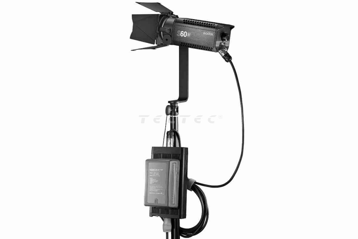 - Netz- oder Akkubetrieb mit optionalem 14,8 V V-Mount Akku möglich