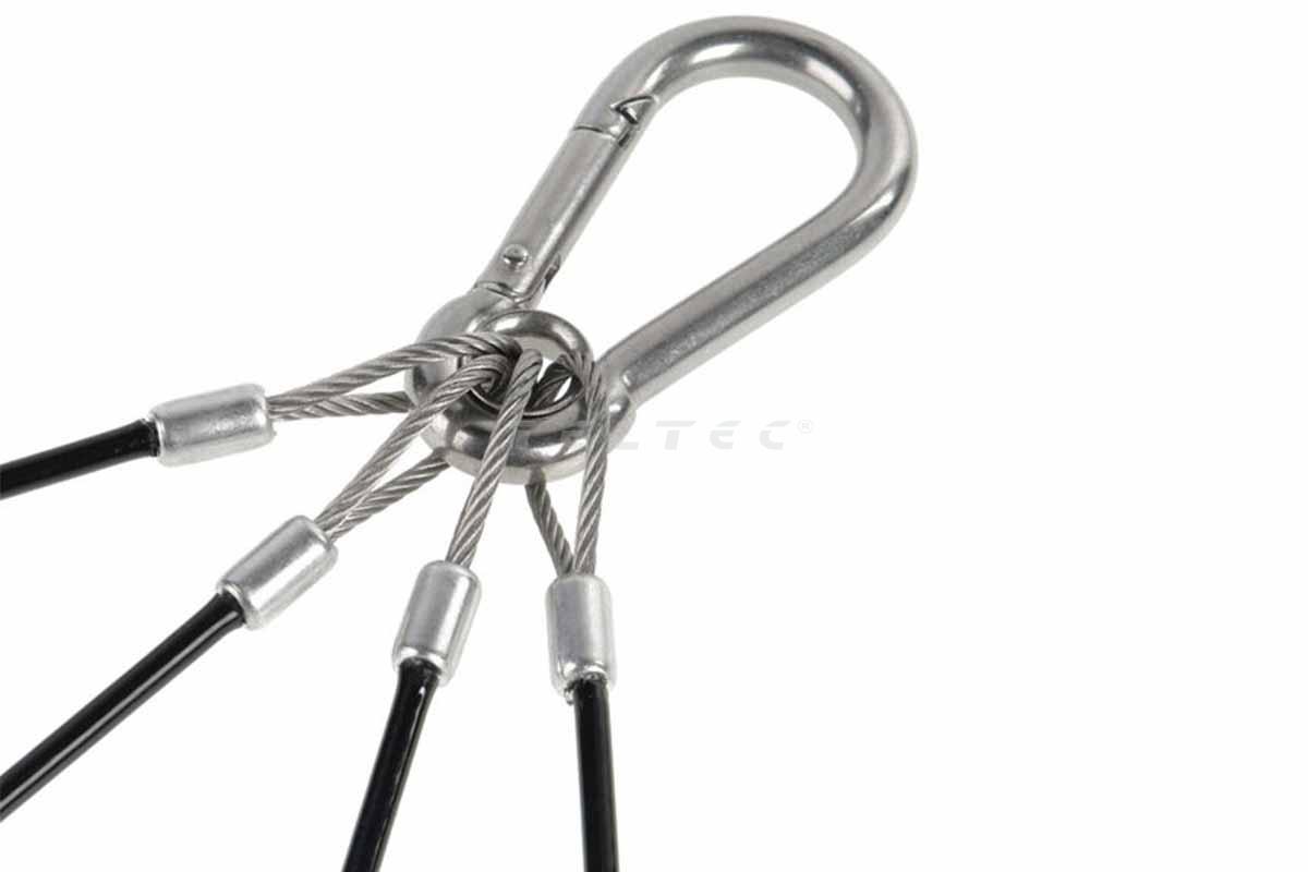 Das Godox SCH01 ist ein Stahlschutzkabel, das speziell für die Godox KNOWLED P600Bi Hard LED Leuchte konzipiert wurde und zusätzlichen Schutz bei der Montage an Gerüsten oder Traversen bietet. Bestehend aus 4 geflochtenen Stahlkabeln, die an einem Ende mit einem gemeinsamen Karabinerhaken und am anderen mit jeweils einem Karabinerhaken, ausgestattet sind, wird eine max. Traglast von 400 kg erreicht.