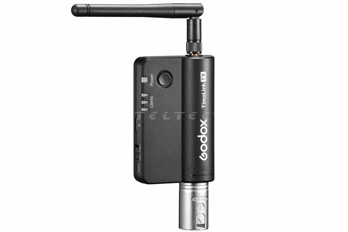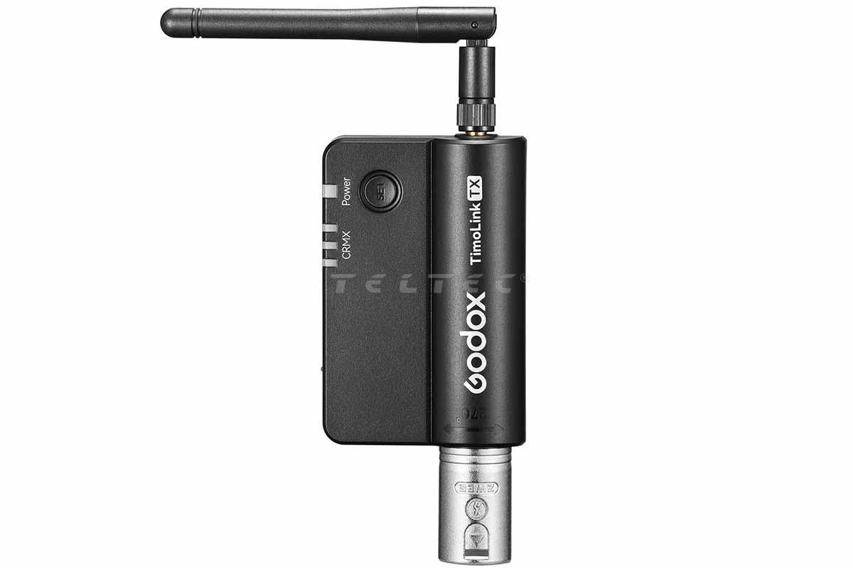 Der Godox TimoLink TX DMX Transmitter ist ein drahtloser DMX Sender mit LumenRadio CRMX-Modul und ist kompatibel mit Godox oder anderen Leuchten die über eine DMX-Steuerfunktion verfügen. Der TimoLink TX konvertiert eine kabelgebundene DMX-Konsole zu einem kabellos gesendetes Signal an CRMX-kompatible Leuchten oder Empfänger.