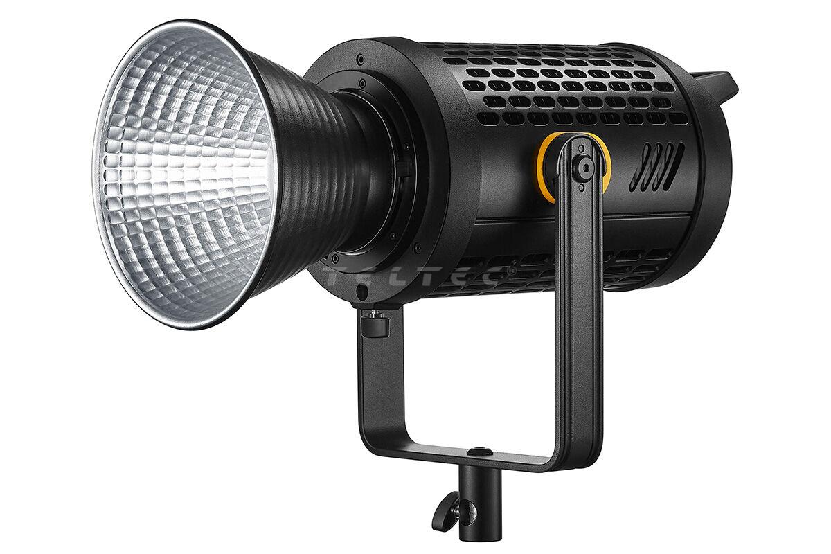 Die Godox LED UL150ll ist eine dimmbare 160 W LED Leuchte mit einem nahezu geräuschlosem passivem Kühlsystem. Die Leuchte bietet eine Farbtemperatur von 5.600 K bei einem CRI von 96 und einem TLCI von 97. 12 vorprogrammierte Lichteffekte sowie 4 vorprogrammierte Dimmkurven vervollständigen die Ausstattung der Leuchte. Zudem stehen verschiedene Möglichkeiten zur Steuerung zur Verfügung: per DMX, Godox Light App oder der optionalen Godox RC-A6 Fernbedienung. Ausgestattet mit dem Bowens-Mount-Anschluss kann eine Vielzahl an kompatiblem Zubehör montiert werden.
