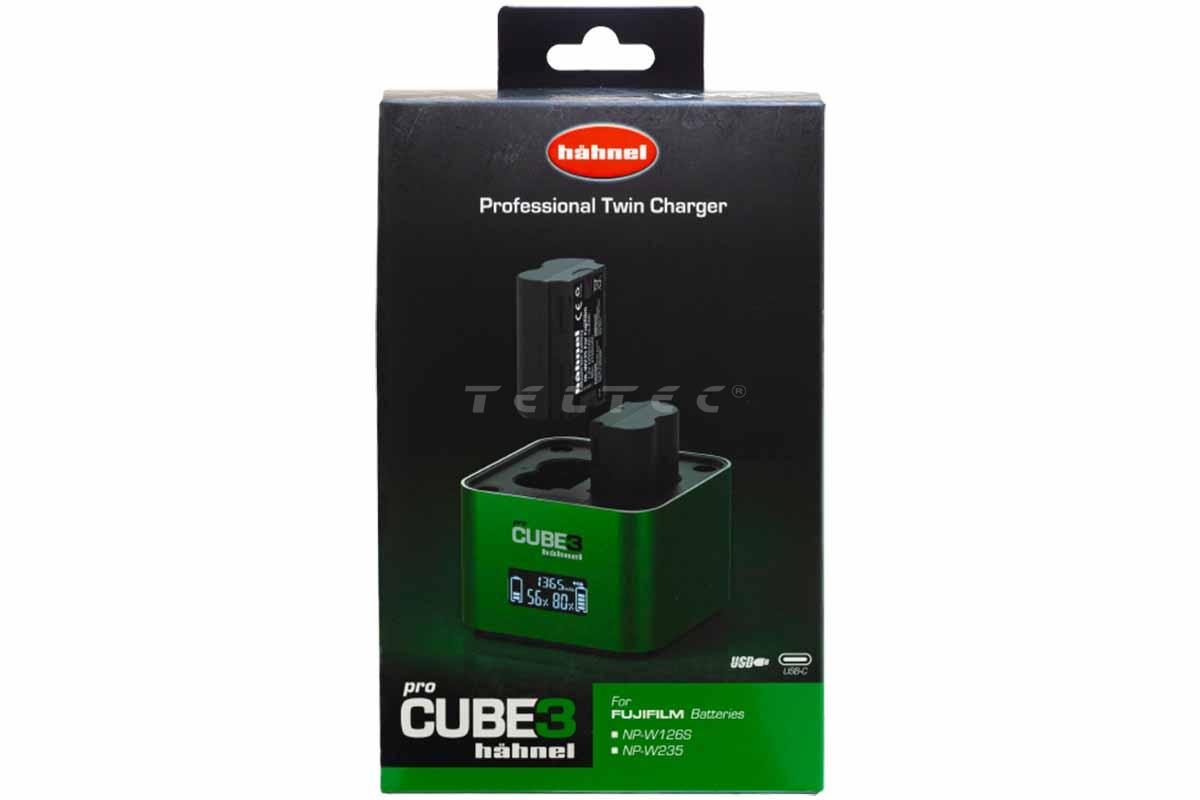 Der Hähnel ProCube3 Fujifilm ist ein kompaktes Dual-Ladegerät für Fujifilm Akkus vom Typ NP-W126S und NP-W235 . Das Ladegerät ermöglicht es einen Akku allein oder zwei gleichzeitig aufzuladen. Es bietet ein schnelles Aufladen in ca. 15 Min., eine mAh-Anzeige auf dem LC-Display zeigt dabei an, wie viel Kapazität dem Akku zu gespeist wurde. Das LC-Display bietet weitere umfangreiche Ladeinformationen. USB-Geräte können über die integrierte USB Typ A Schnittstelle geladen werden. Zusätzlich verfügt das Ladegerät über eine AA-Schublade mit der ebenfalls gleichzeitig bis zu vier AA-Batterien aufgeladen werden können.