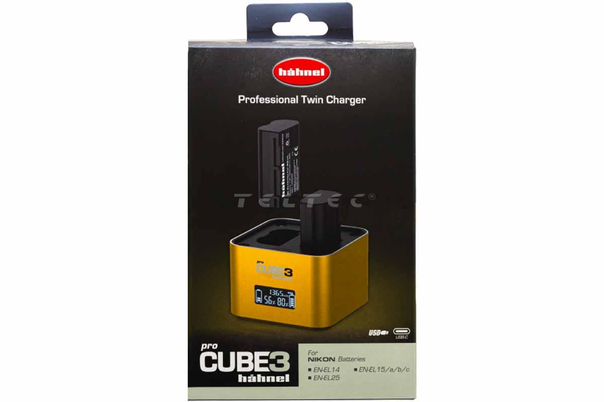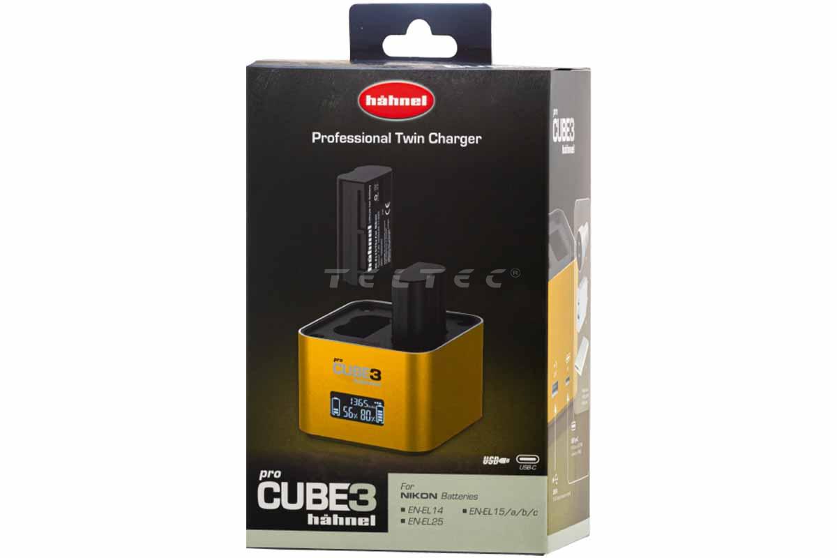 Der Hähnel ProCube3 Nikon ist ein kompaktes Dual-Ladegerät für Nikon Akkus vom Typ EN-EL14, EN-EL15 und EN-EL25. Das Ladegerät ermöglicht es einen Akku allein oder zwei gleichzeitig aufzuladen. Es bietet ein schnelles Aufladen in ca. 15 Min., eine mAh-Anzeige auf dem LC-Display zeigt dabei an, wie viel Kapazität dem Akku zu gespeist wurde. Das LC-Display bietet weitere umfangreiche Ladeinformationen. USB-Geräte können über die integrierte USB Typ A Schnittstelle geladen werden. Zusätzlich verfügt das Ladegerät über eine AA-Schublade mit der ebenfalls gleichzeitig bis zu vier AA-Batterien aufgeladen werden können.