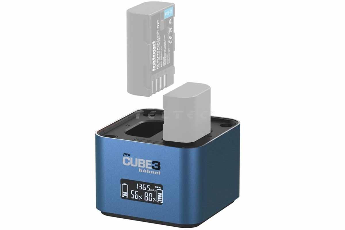 Der Hähnel ProCube3 Panasonic ist ein kompaktes Dual-Ladegerät für Panasonic Akkus vom Typ DMW-BLC12, BLF19, BLJ31 und BLK22 . Das Ladegerät ermöglicht es einen Akku allein oder zwei gleichzeitig aufzuladen. Es bietet ein schnelles Aufladen in ca. 15 Min., eine mAh-Anzeige auf dem LC-Display zeigt dabei an, wie viel Kapazität dem Akku zu gespeist wurde. Das LC-Display bietet weitere umfangreiche Ladeinformationen. USB-Geräte können über die integrierte USB Typ A Schnittstelle geladen werden. Zusätzlich verfügt das Ladegerät über eine AA-Schublade mit der ebenfalls gleichzeitig bis zu vier AA-Batterien aufgeladen werden können.