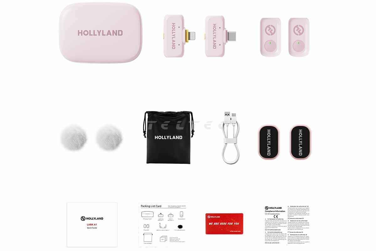 - 1xHollyland LARK A1 Combo Wireless Microphone Cloud Pink