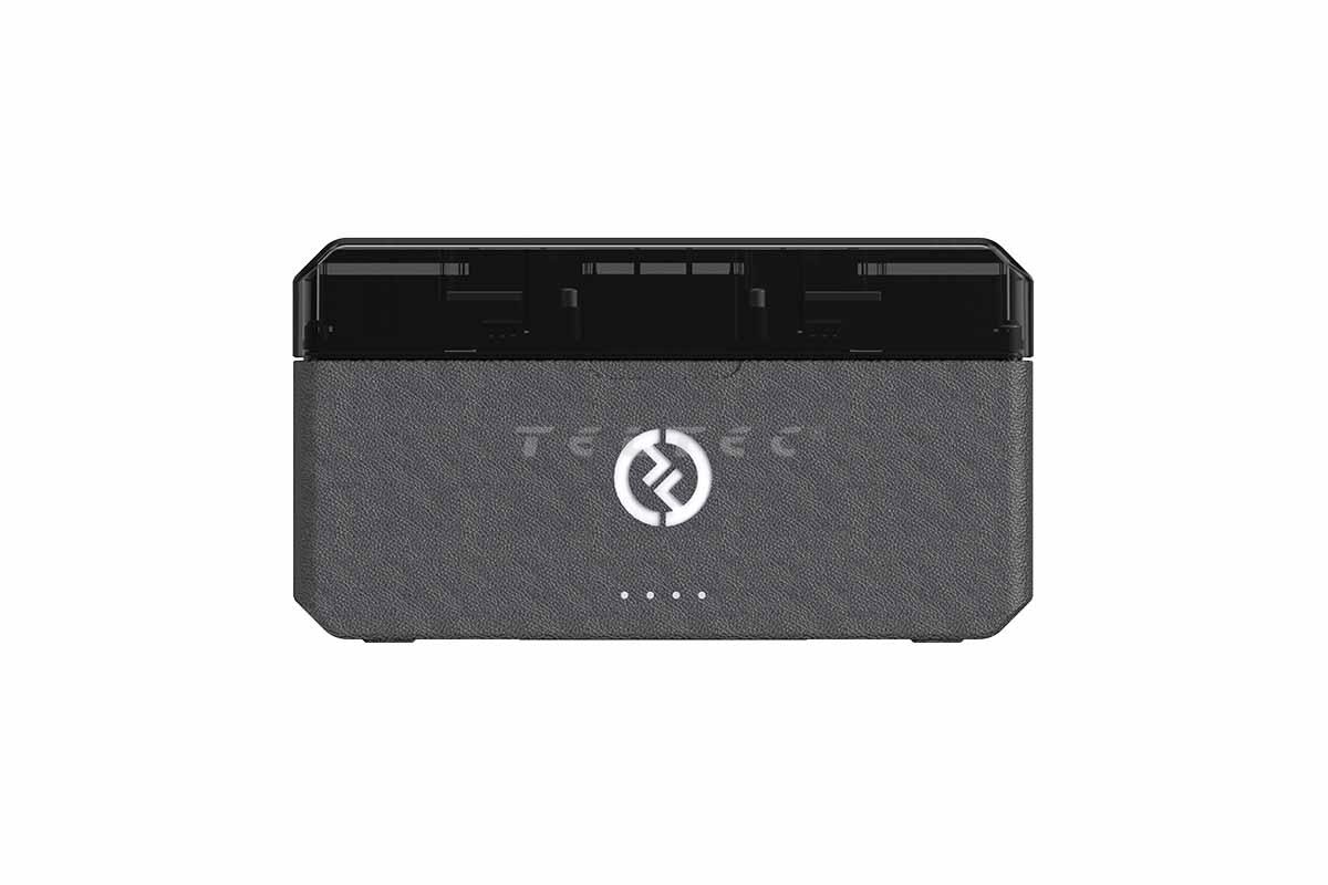 Das Hollyland LARK MAX Charging Case (Black) ermöglicht ein bis zu zweimaliges Aufladen von zwei Sendern und einem Empfänger des Hollyland LARK MAX Systems.