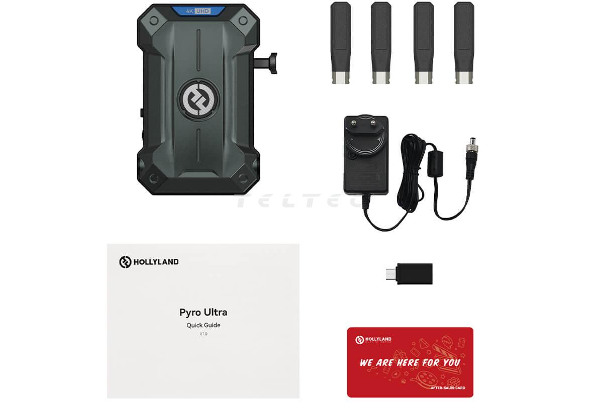 Der Hollyland Pyro Ultra TX ist ein drahtloser Videosender, der mit unbegrenzt vielen Empfängern verbunden werden kann. Der Sender verfügt über einen 3G-SDI- und einen HDMI-Eingang und unterstützt Aufnahmen mit bis zu 4K/60-fps unterstützen. Im Fokusmodus wird eine Übertragungslatenz von 20 ms erreicht. Mittels Hollylands priprietärer TWiFi-Technologie wird eine Reichweite von bis zu 1,5 km bei direkter Sichtverbindung erreicht. Des Weiteren unterstützt das Pyro Ultra System automatisches Frequenz-Hopping für eine zuverlässige und stabile Übertragung. Als Teil des Pyro-Ökosystems lässt sich Ultra in die gesamte Pyro-Produktfamilie integrieren, um Workflows über Produktionen jeder Größe hinweg zu skalieren.