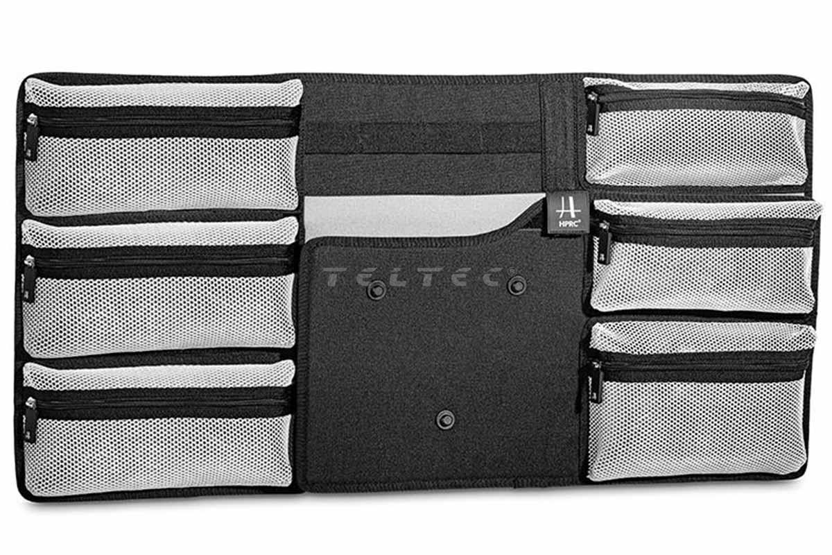 Das HPRC Organizer Kit for HPRC2745W ist ein zusätzlicher Verstauraum für den HPRC2745W-Koffer. Er kann mittels angebrachter Klebestreifen in die Kofferschale eingefügt werden und besteht aus insgesamt 7 Taschen, wovon eine entnehmbar und mit einem Schultergurt ausgestattet ist. Dahinter findet sich zudem Platz für ein Laptop oder Tablet, welches mit einem verstellbaren Stretch befestigt werden kann. Die Beschaffenheit des Taschenstoffes verhindert sofortiges Durchsickern versehentlich darauf verschütteten Wassers. Der rückseitige Stoff ist überdies beständig gegen Schimmel, Chemikalien und Witterung.