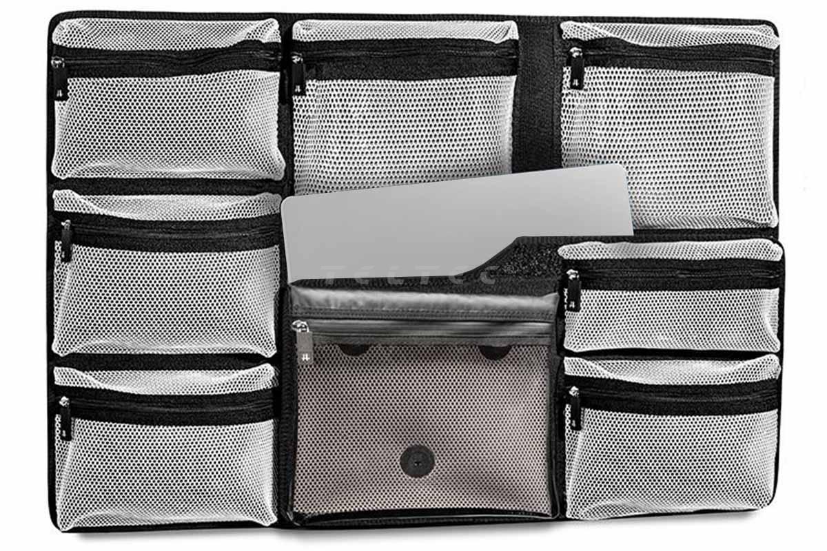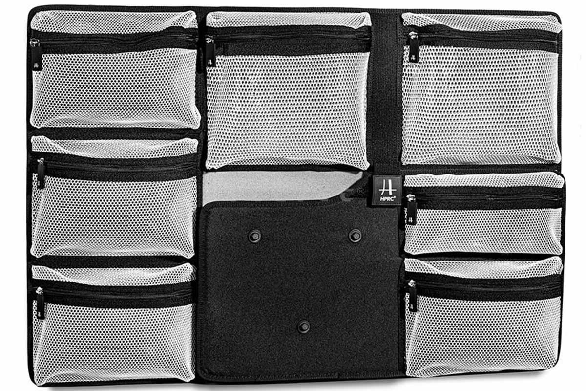 Das HPRC Organizer Kit for HPRC2780W / 2800W ist ein zusätzlicher Verstauraum für den HPRC2780W und 2800W-Koffer. Er kann mittels angebrachter Klebestreifen in die Kofferschale eingefügt werden und besteht aus insgesamt 8 Taschen, wovon eine entnehmbar und mit einem Schultergurt ausgestattet ist. Dahinter findet sich zudem Platz für ein Laptop oder Tablet, welches mit einem verstellbaren Stretch befestigt werden kann. Die Beschaffenheit des Taschenstoffes verhindert sofortiges Durchsickern versehentlich darauf verschütteten Wassers. Der rückseitige Stoff ist überdies beständig gegen Schimmel, Chemikalien und Witterung.