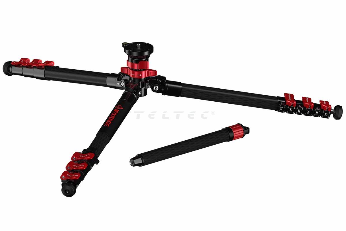 Leichtes Carbon-Stativ mit Uprise-Mittelsäule, 6 kg Tragkraft und 17,5 cm Minimalhöhe