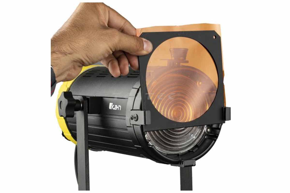 Der Ikan Helia HF150B 150 Watt Bi-Color Stufenlinsen-Scheinwerfer zeichnet sich durch sein kompaktes, robustes Aluminium-Gehäuse und seine Vielseitigkeit aus. Mit einer einstellbaren Farbtemperatur von 3.200 K bis 5.600 K, einer Lichtleistung von bis zu 12.400 Lux (4.400 K/[email protected] m), einem Flügeltor mit vier Lichtklappen und einer Filterfolien-Halterung ist der Ikan Helia HF150 die ideale Wahl für eine anpassungsfähige und präzise Beleuchtung.