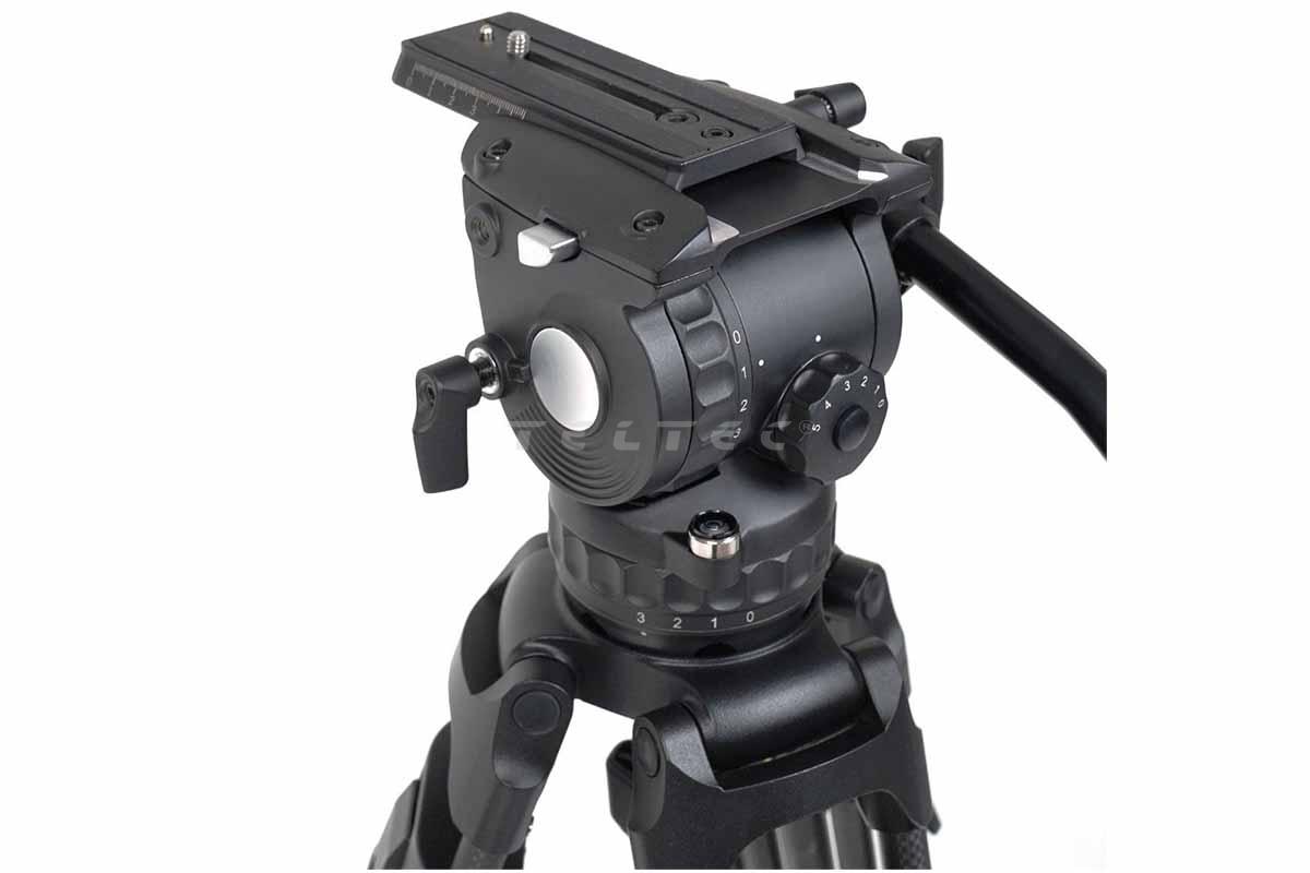 • Fluid-Kopf mit stufenloser Bremse für sanfte Kamerabewegungen