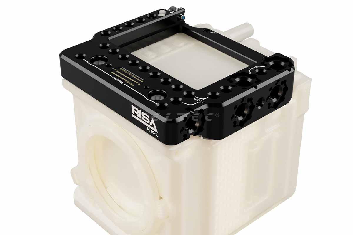 Die KipperTie Risa KX-L ist eine Full Top Plate mit Quick-Release Cheese Plate für die RED Komodo-X, ausgestattet mit einer hochwertigen passiven Durchleitung für die oberen Datenpins und einem 3-poligen Run-Stop-Anschluss. Mit dieser Fähigkeit ist Risa KX-L die einzige Riser-Lösung, die vollständig mit dem DSMC3-Monitor von Red, dem DSMC3-Adapter A und dem Komodo Link-Adapter kompatibel ist. Alle präzisionsvergoldeten Pogo-Pins sind bestückt, um die Kompatibilität mit zukünftigem Zubehör zu gewährleisten, das denselben Anschluss verwendet.