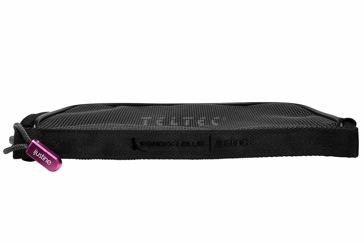 Die Kondor Blue iJustine EDC Tech Pouch (KB-EDCTP-J) ist eine Kabelorganisationstasche, welche in Kollaboration mit iJustine entstanden ist. Das zentrale Fach besteht aus robustem PVC-Mesh, das nicht nur langlebig ist, sondern auch eine klare Sicht auf den Inhalt der Tasche ermöglicht. Eine 3,5-mm-Ösenleiste verleiht der Tasche Struktur, ohne die Flexibilität zu beeinträchtigen, während ein straffes Nylongurtband an der Rückseite zusätzliche Stabilität bietet. Die verstärkten Schlaufen an beiden Enden des Gurtbandes ermöglichen die Befestigung von Riemen oder Clips und erweitern die Einsatzmöglichkeiten. Der Kupferzahn-Reißverschluss mit doppelseitigen Schiebern sorgt für geschmeidiges Öffnen und Schließen und ist dank der optimierten Ecken besonders langlebig. Die speziell designten Zipper-Pulls in iJustines ikonischem Pink setzen einen stilvollen Akzent. Im Inneren der Tasche finden sich elastische 1-Zoll-Schlaufen, die ideal für Apple Pencils oder kleine, wichtige Zubehörteile wie Dongles geeignet sind.