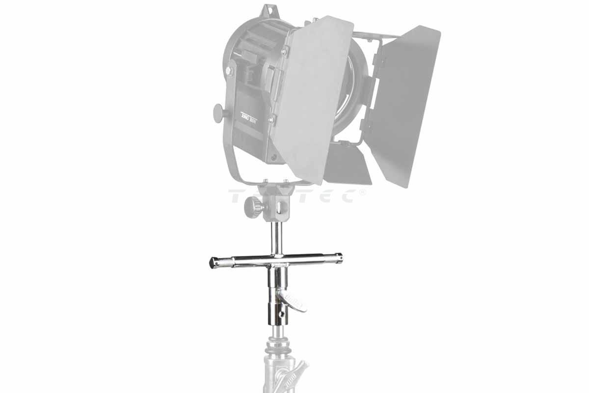 Der Kupo KS-148 ist ein 3-fach Baby-Pin-Adapter für C-Stands. Er lässt sich auf 16-mm-Baby-Pins aufstecken und mithilfe einer Flügelschraube fixieren. Wird die Schraube entfernt, kann der Adapter auch in einen 28-mm-Junior-Receiver eingesetzt werden. Die drei fest verschweißten Zapfen bieten Platz für Scheinwerfer, Vorschaltgeräte oder weiteres Zubehör.