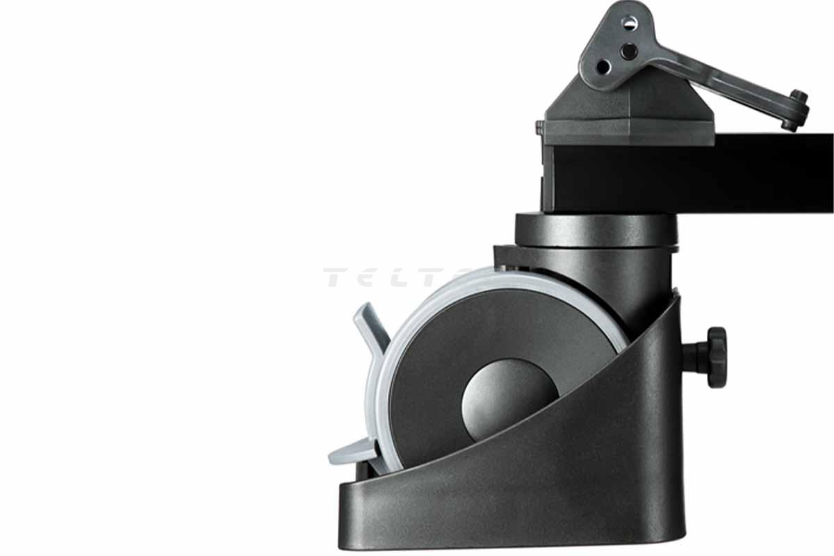 Das P1000 Pedestal ist mit Tracking-Locking Mechanismen und Kabelschutzvorrichtungen ausgestattet. Der Tracking-Locking Mechanismus gewährleistet eine geradlinige Bewegung durch Verriegeln der Nachlaufrichtung, während die Kabelschutzvorrichtungen verhindern, dass die Räder während der Studioproduktion über das Kabel laufen. Die Gasfeder in der Säule des P1000 Pedestal erleichtert den Mittelsäulenauszug. Höhenanpassungen sind auch mit schwerer Ausrüstung problemlos möglich. Das P1000 kann einfach in Einzelteile zerlegt werden. Dies erleichtert den Transport innerhalb und außerhalb der Produktionsstudios. Der Luftdruck kann außerdem an der leicht zugänglichen Luftdruckanzeige abgelesen werden. Neben den Libec Stativköpfen, können auf Köpfe anderer Hersteller verwendet werden. Mit zusätzlichem Zubehörde können die Köpfe auch mit einer Halbschale bedient werden. Die Friktion der oberen Säule kann mit einer Drehverriegelung nach Bedarf eingestellt werden.