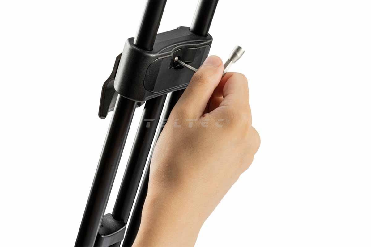 - Mit dem mitgelieferten Einstellwerkzeug kann die Verriegelungskraft des Stativs leicht angepasst werden
