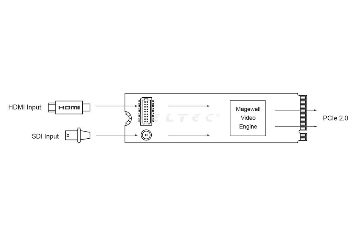 Die Magewell Eco Capture AIO M.2 ist eine Video-In-Karte mit 1x 3G-SDI / HD-SDI / SDI und 1x HDMI 1.4a Eingang.