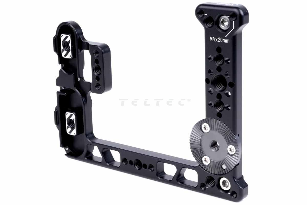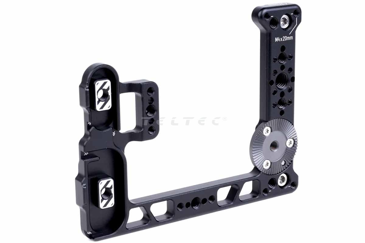 - Wird seitlich an der RED V-Raptor befestigt und verfügt über 1/4-20, 3/8-16 mit ARRI-Befestigungsstiften, eine ARRI-Standardrosette und M4x20mm-Gewindebohrungen