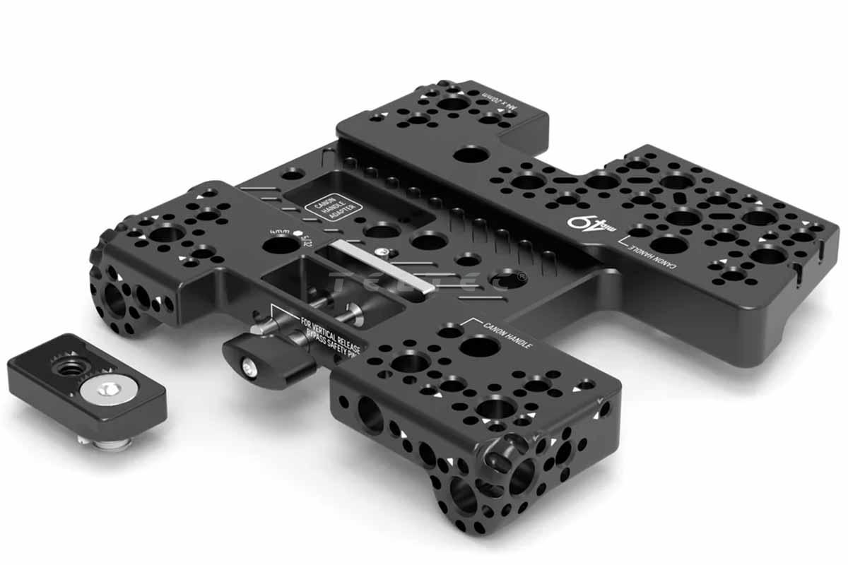 - Wenn der Adapter für den Canon Griff nicht verwendet wird, kann er auf der Top Plate positioniert werden, um Befestigungspunkte für die mitgelieferte Canon Mikrofonhalterung zu schaffen