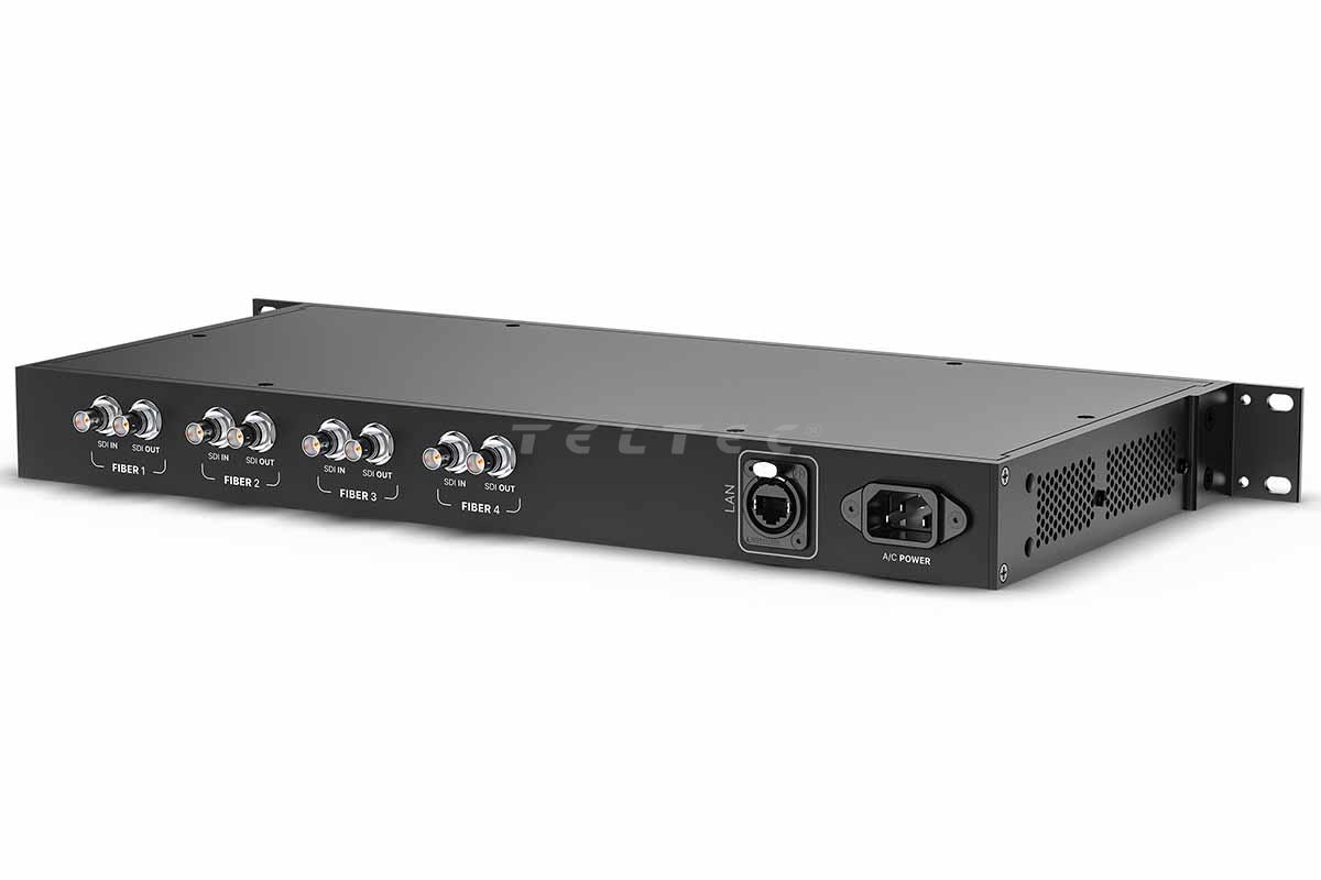 - wandelt bis zu 4 Glasfasersignale, die von den Fiber Camera Boxen kommen, in jeweiligen SDI-In/SDI-Out-Paare um