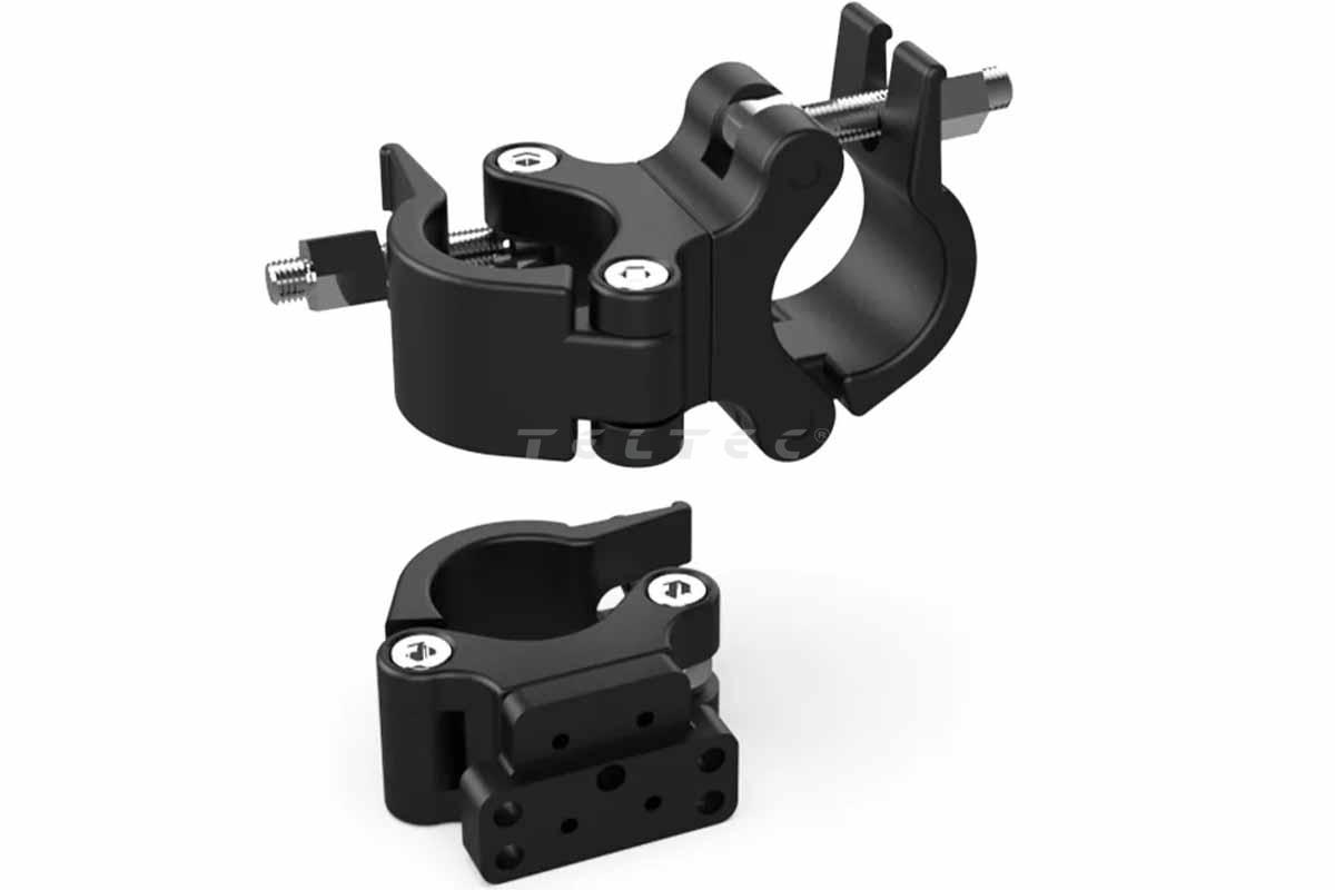 Der MOVMAX All-Terrain Rickshaw Lamp Holder ist eine Lampen-Halterung für die All-Terrain-Rikscha. Sie ermöglicht die Ausstattung der Rikscha mit verschiedenen Beleuchtungsoptionen. Das Set enthält zwei Arten von Klemmen: eine einseitige Klemme mit einem Befestigungsgewinde auf der gegenüberliegenden Seite und eine doppelseitige Klemme. Diese können an den 45-mm-Rohren der Rikscha angebracht werden, um Monolichter, große Reflektoren oder Röhrenleuchten sicher zu montieren.