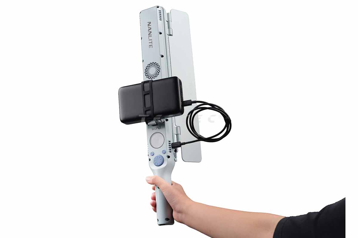 Die Nanlite AS-PBH-NPF Powerbank-Halterung für z.B. die Nanlite Multifunktionsleuchten miro und wand wird einfach in die Akkuaufnahme für den NP-F-Akku an der Leuchte eingesetzt und die Powerbank mit einem elastischen Gurt fixiert.