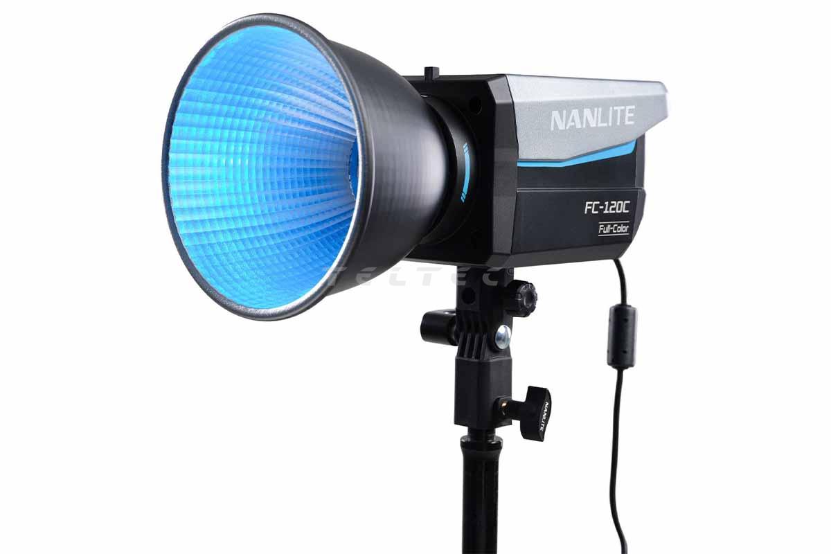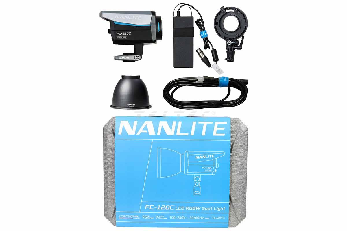 Die Nanlite FC-120C RGBW Spot Light ist ein professioneller Full-Color Reportage- und Studio-Scheinwerfer mit weißem Licht (variable Farbtemperatur 2.700 K – 7.500 K) und farbigem Licht (aus Farbspektrum oder durch additive Farbmischung). Besonders geeignet für Cine/Broadcast, Virtual Production, Musikvideos, Werbe-, Porträt- und Produktaufnahmen, Interview, Videokonferenzen, Streaming sowie Livestream, Social-Media-Aktivitäten, Vlogging und Webinare.