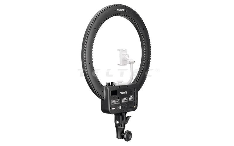 Die Nanlite halo 16 ist ein dimmbares Bi-Color Soft LED Ringlicht mit 288 LEDs und Tragetasche.