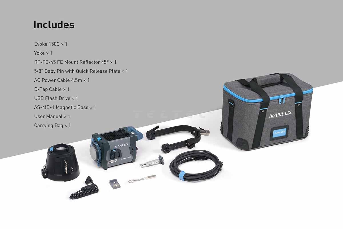 Der Nanlux Evoke 150C ist ein kompaktes, vollfarbfähiges LED-Spotlight für flexible Setups und mobilen Einsatz. Die Leuchte nutzt die Nebula C8-Lichtengine für ein breites Farbspektrum und präzise Farbwiedergabe. Ein CCT-Bereich von 1.000–20.000 K mit ±200 G/M-Korrektur ermöglicht exakte Weißabgleiche in jeder Umgebung. Das IP66-geschützte Metallgehäuse ist für anspruchsvolle Outdoor-Drehs ausgelegt. Das All-in-One-Design minimiert Aufbauzeiten und erleichtert das Arbeiten am Set.