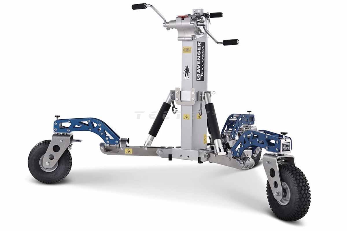 Das Avenger B7030FF Buccaneer Stativ 3 m ist ein revolutionäres Schwerlaststativ für Filmscheinwerfer, das als Antwort auf die Nachfrage der Industrie nach einem Wind-Up-Stativ mit niedriger Ladehöhe und TÜV-Zertifizierung entwickelt wurde und eine Maximalhöhe von 3 m erreicht. Die hohe Traglast (80 kg) wird durch zwei einzigartige Schlüsselmerkmale erreicht: erstens die nach hinten klappbare Basis und zweitens die bundlose Säule aus mehreren Segmenten. Die Kombination dieser beiden Merkmale ermöglicht es, das Stativ in einer Höhe von nur 92,5 cm mit einer Leuchte zu bestücken. Damit ist es das weltweit am tiefsten zu beladende Wind-Up-Stativ mit einer maximalen Höhe von 3 m. Sobald die Lampe angebracht ist, kann die Basis des Stativs mithilfe der drei Nivellierfüße, die auch geringe Bodenunebenheiten ausgleichen, sicher in den Betriebsmodus versetzt werden.