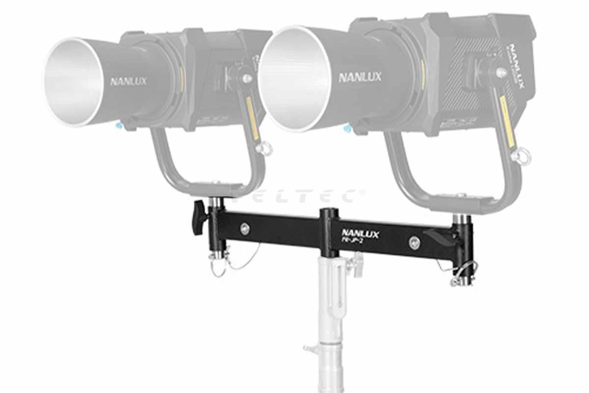 Die NANLUX FR-JP-2 Doppelschiene, für 2 Evoke-Scheinwerfer (auch mit Fresnel-Vorsätzen) ist eine Doppelleuchtenschiene für zwei Evoke-Leuchten gleichzeitig. Durch ihre Beschaffenheit aus einer hochfesten Aluminiumlegierung und rostfreiem Stahl bietet sie eine stabile Struktur und hohe Belastbarkeit sowie Vibrationsfestigkeit. Zudem unterstützt sie 360°-Drehungen mit einem Einstellgriff.