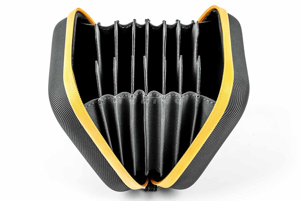 Das NiSi Caddy II für Rundfilter ist ein Filterhalter für bis zu 8 Filter (bis zu 95 mm Durchmesser). Dank der äußeren Hartschale und der inneren Fächer aus sehr weichem Mikrofaserstoff wird den bis zu 8 Filtern optimaler Schutz geboten. Der beiliegende Karabinerhaken macht es zudem leicht, die Tasche mit sich zu führen, ohne sie in der Hand tragen oder Platz im Rucksack verbrauchen zu müssen.
