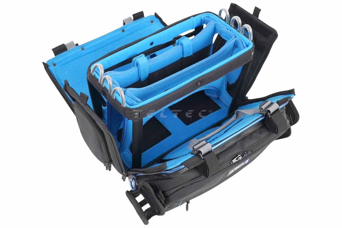 - Zwei große Taschen zur Aufbewahrung von Audiozubehör