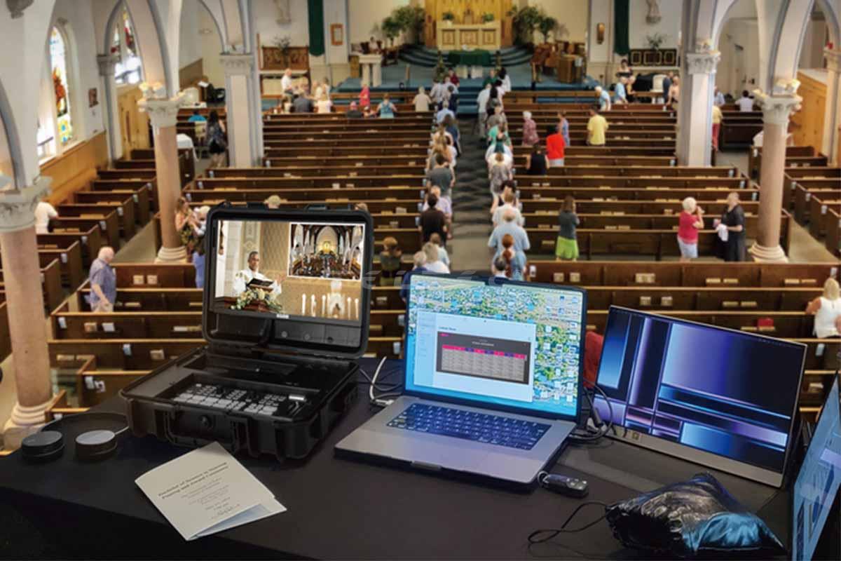 Live Streaming-Bildmischer mit 14" Monitor im Hartschalenkoffer