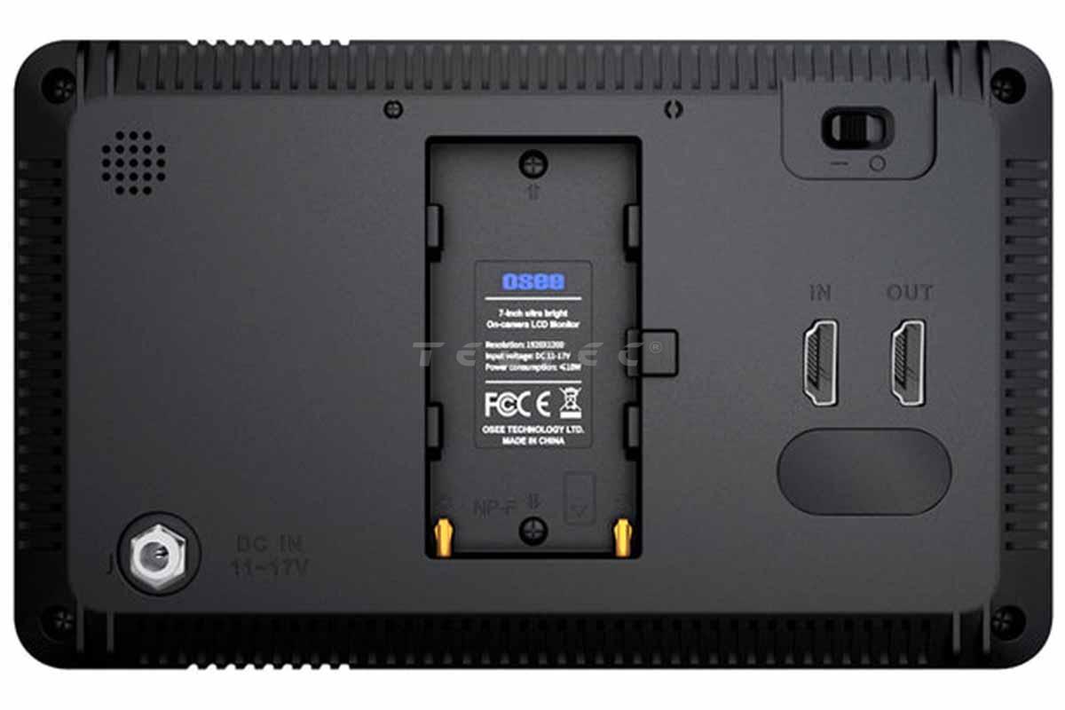 Der OSEE T7 7" UHD 4K HDMI Ultrabright Field Monitor verfügt über ein scharfes 7“ 1920 x 1200 Display mit HDMI Ein- und Ausgang und Eingangsauflösungen von bis zu UHD 4K Video. Er verfügt über einen integrierten Batterieslot der L-Serie auf der Rückseite und kann auch über das mitgelieferte Netzteil oder eine D-Tap-fähige Stromquelle mit Strom versorgt werden. Das IPS-LCD-Panel bietet ein Seitenverhältnis von 16:10, ein Kontrastverhältnis von 1.200:1 und eine ultrahelle Helligkeit von 3.000 cd/m², die sowohl im Freien als auch in Innenräumen ein gutes Bild ermöglicht.
