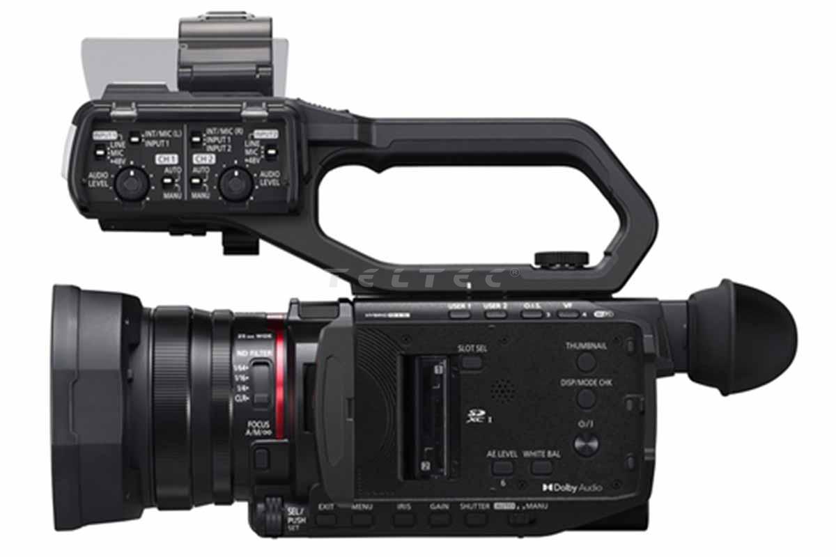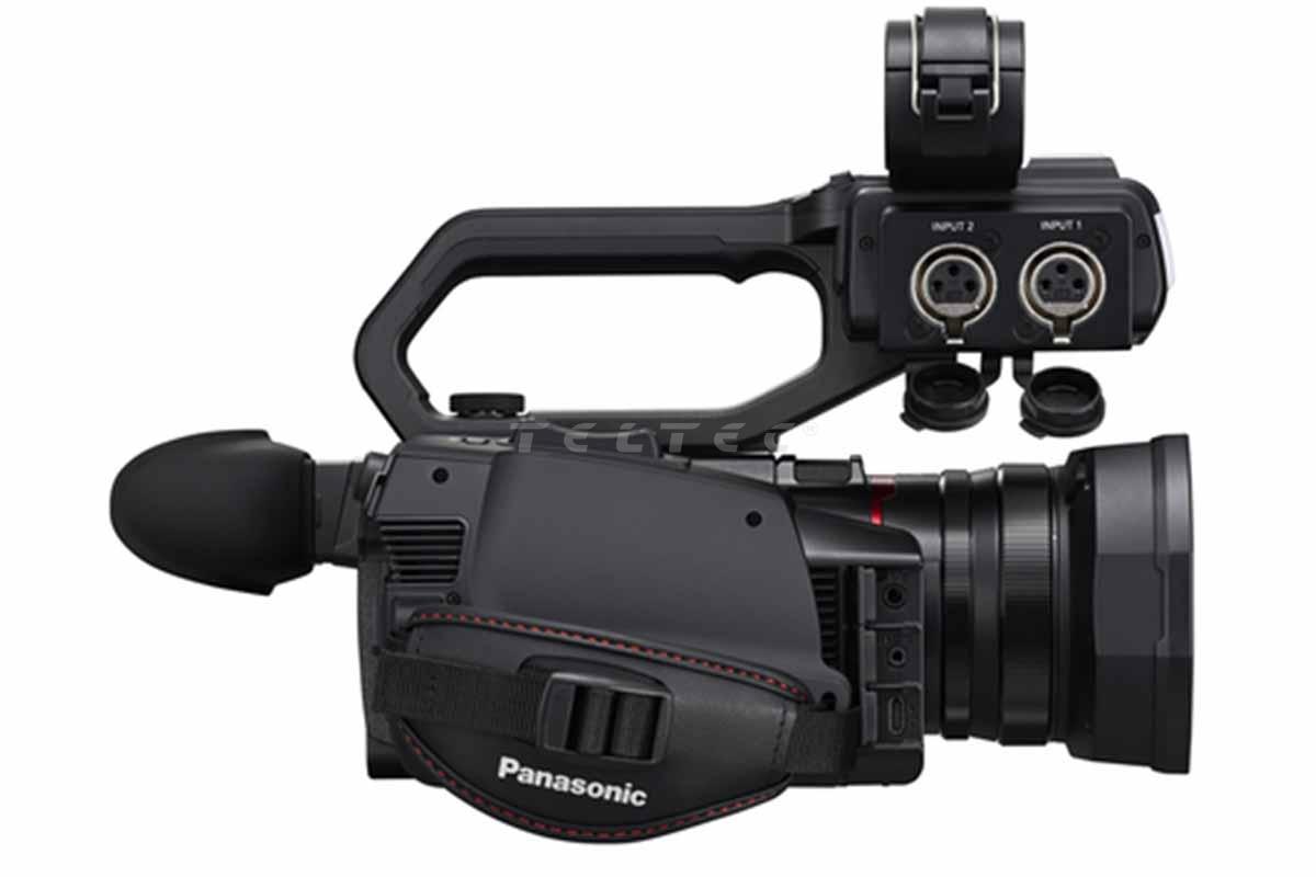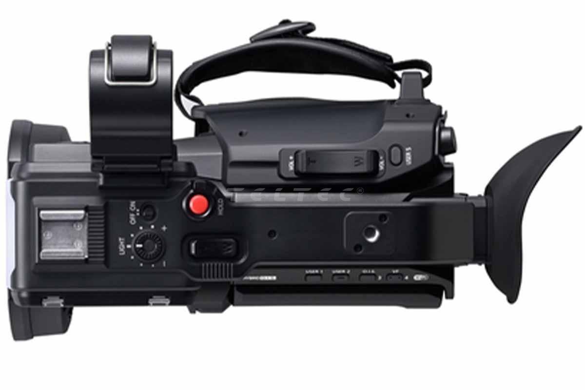- OLED-Sucher und und Panasonic VW-HU1-Handgriff mit Zweikanal-XLR-Audioeingängen sowie einem hellen, einstellbaren LED-Licht