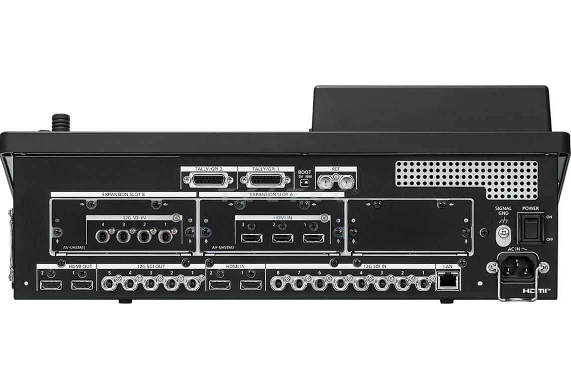Der Panasonic AV-UHS500 ist ein 4K Live-Mischer und verfügt über fast alle Grundfunktionen eines High-End Bildmischers. Der Panasonic AV-UHS500 ist in der Lage, 4K-Videos mit der gleichen Bedienbarkeit wie HD zu produzieren. Zusätzlich zur 4K/3G/HD-Multiformat-Unterstützung ermöglicht die Installation zusätzlicher optionaler Unit-Boards die Erweiterung auf bis zu 16 SDI-Eingänge, um einen reibungslosen Betrieb bei Veranstaltungen mit vielen Kameras zu ermöglichen.