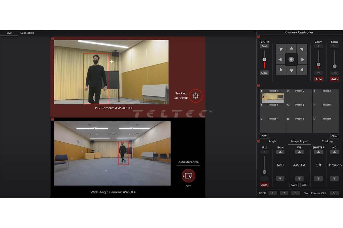 Ist die Auto-Tracking Software auf einem PC*1 oder Server installiert, lässt sich das Auto-Tracking-System einfach durch Anschließen einer integrierten 4K-Kamera (AW-UE70W/K) oder einer integrierten HD-Kamera (AW-HE40 Series oder AW-HE130W/K) realisieren. Die Anschaffungskosten reduzieren sich, da der Aufwand für die Systemkonfiguration sehr gering ist und keine neuen Geräte benötigt werden.