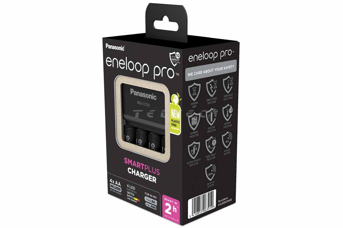 Das Panasonic eneloop BQCC55 ist ein Ladegerät mit Einzelschachtüberwachung und smarter Aufladung. Unterstützt werden eneloop- und eneloop pro Akkus in den Größen AA und AAA, die unabhängig voneinander aufgeladen werden. Dabei wird automatisch die Stromzufuhr abgeschaltet sobald ein Akku vollständig aufgeladen ist. Des Weiteren zeichnet sich der BQCC55 durch eine sehr schnelle Ladezeit aus, wobei zwei eneloop-AA-Akkus in lediglich 90 Minuten aufgeladen werden. Über die LEDs wird die verbleibende Kapazität und der Ladevorgang angezeigt. Bei rotem Licht ist der Akku zu weniger als 20%, bei gelbem Licht zwischen 20 % und 80 % und bei grünem Licht zu mehr als 80% geladen. Bei vollständiger Ladung ist das Licht ausgeschaltet.