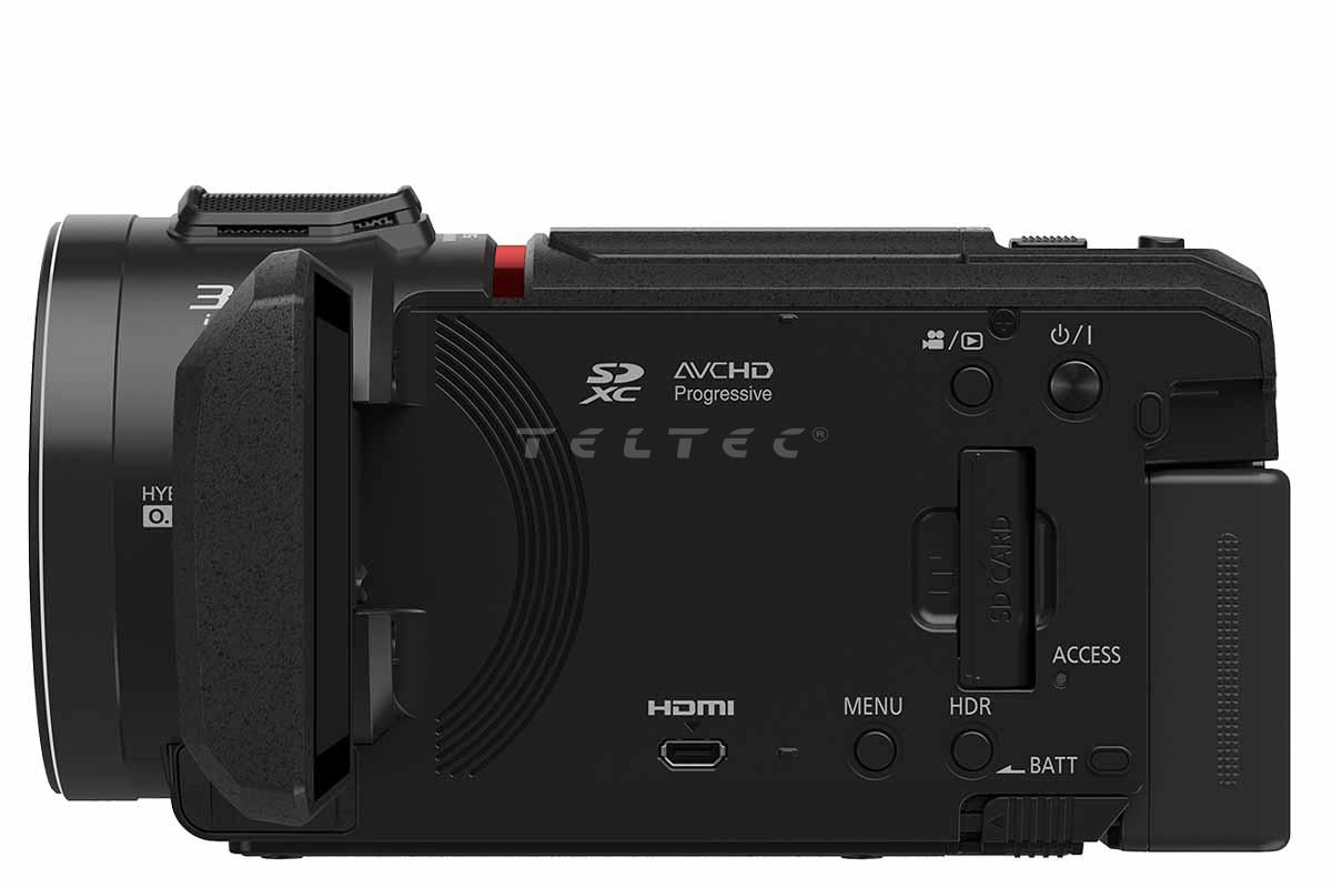 Der Panasonic HC-VX3 ist ein kompakter 4K Camcorder mit einem 1/2,5" BSI-Sensor mit 8,5 MP und einem Objektiv, das bis zu 25mm Weitwinkel sowie einen 24-fachen optischen Zoom bietet. Der Camcorder bietet 4K-Aufnahmefunktionen und zeichnet sich durch eine schnelle und präzise Fokussierung aus. Zudem ist ein optischer Bildstabilisator implementiert, der über Hybrid O.I.S. mit 5-Achsen-Korrektur verfügt, sowie das Ball O.I.S. System, das Verwacklungsunschärfen beim Zoomen reduziert. Darüber hinaus sorgt der Active Contrast für einen verbesserten Kontrast bei minimalen Lichtverhältnissen. Der HC-VX3 ist mit einem LCD-Monitor ausgestattet, der einen elektrostatischen Touchscreen wie auch eine Auflösung von 1,56 MP bereitstellt.