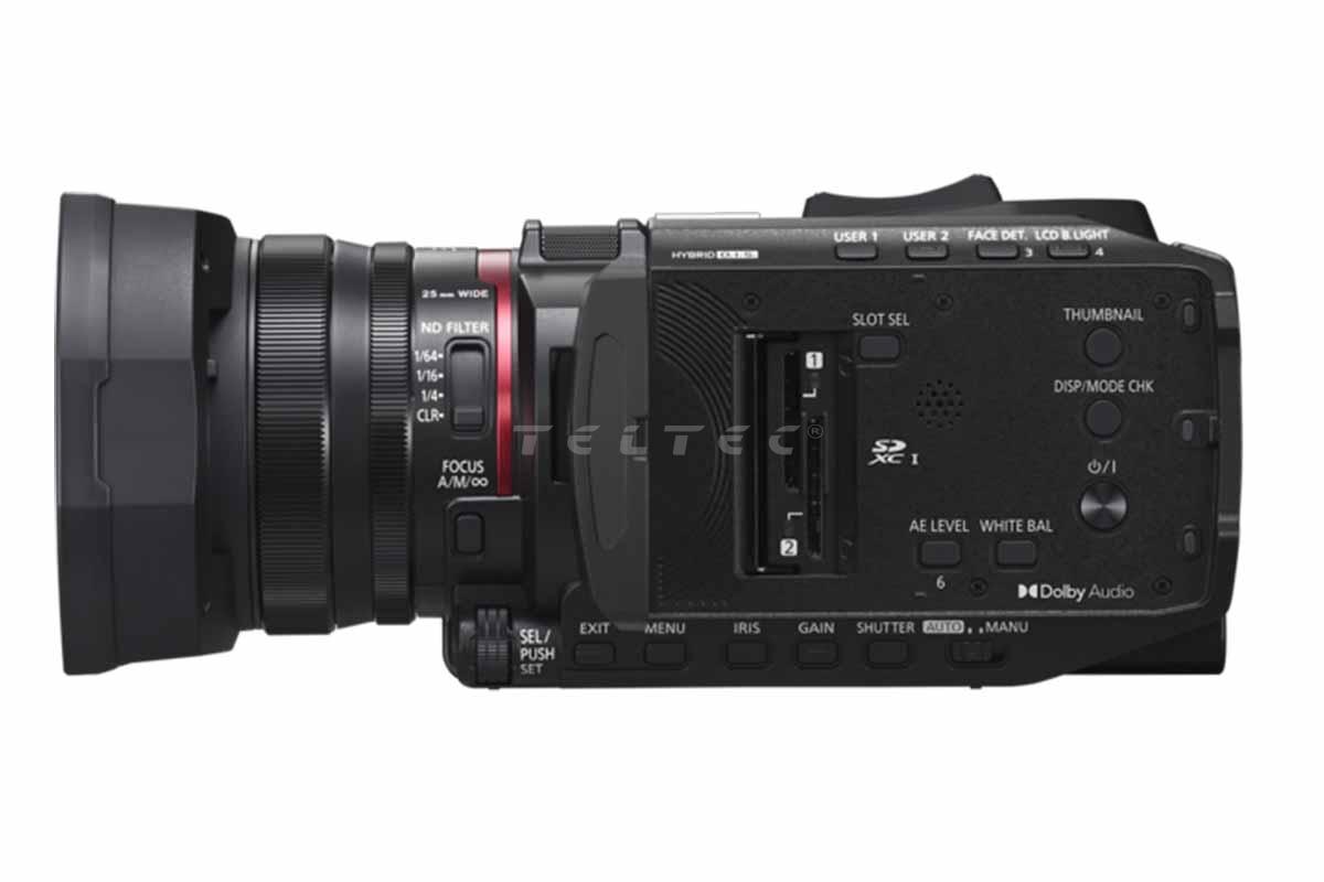 Der Panasonic HC-X1200E ist ein High-End Camcorder mit einem 1/2.5-Zoll MOS Sensor verbaut und bietet Aufnahmemöglichkeiten in bis zu 4K 60p 4:2:0 10Bit sowie Zeitlupe in FullHD mit bis zu 120 fps. Als kompakter Camcorder bietet der HC-X1200 ein 25 mm Weitwinkel-Objektiv und einen 24fach optischen Zoom. Für eine schnelle manuelle Bedienung verfügt die Kamera über zwei Einstellringe die Fokus, Zoom oder Blende steuern können. Professionelle Werkzeuge wie integrierte ND-Filter oder Waveform, Vectorscope und Zebra Pattern stehen ebenfalls zur Verfügung.