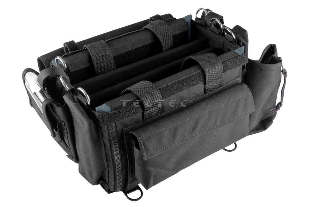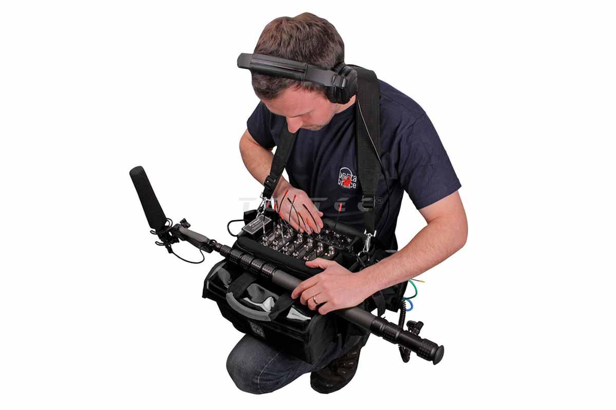 Die Porta Brace AO-1.5XB Audiomischertasche ist eine leichte und dennoch robuste Konstruktion die portablen Audio-Recordern, Mischpulten und mehreren Funkmikrofon-Empfängern ausreichend Platz bietet. Die Hauptstruktur der Tasche besteht aus einer starren Kunststoffverkleidung die mit robustem, gepolstertem Cordura®-Gewebe überzogen ist. Dank dieser Materialkombination entsteht ein stabiler und steifer Rahmen, der maximalen Schutz bei geringem Gewicht bietet.