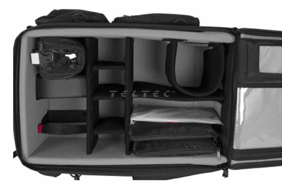 Der Porta Brace BK-2NROR ist ein Rucksack-Kamerakoffer mit einem leichtgängigen, geländegängigen Rad-System. Die Tasche ist aus abriebfestem 1000-Denier Cordura® Material gefertigt. Er hat einen stabilen Kunststoffrahmen mit einer dicken Polsterung aus Etha-Schaum. Das Innere des Koffers ist mit Veltex ausgekleidet, das besonders weich ist und zusätzlichen Schutz für empfindliche Geräte bietet. Die kupferfarbene Innenseite erleichtert die Sicht auf die Ausrüstung und das Zubehör im Inneren des Koffers.
