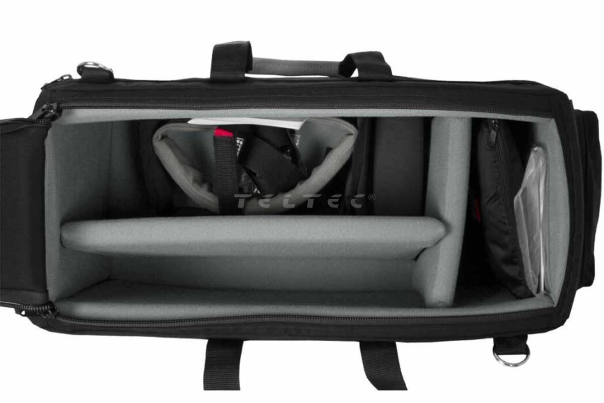 Die Porta Brace CAR-3CAMT Kameratasche aus der Porta Brace Cargo Camera Edition ist für große Camcorder und Zubehör oder DSLR/DSLM Kameras mit Rig konzipiert. Die Tasche besteht aus abriebfestem 1000-Denier Cordura-Nylonmaterial. Mehrere gepolsterte Trennwände im Innenraum lassen sich in jeder beliebigen Position platzieren und so dem zu transportierenden Equipment perfekt anpassen. Zwei robuste Stahlringe dienen zur Befestigung des komfortablen, im Lieferumfang enthaltenen HB-10M Wildleder-Schultergurts.
