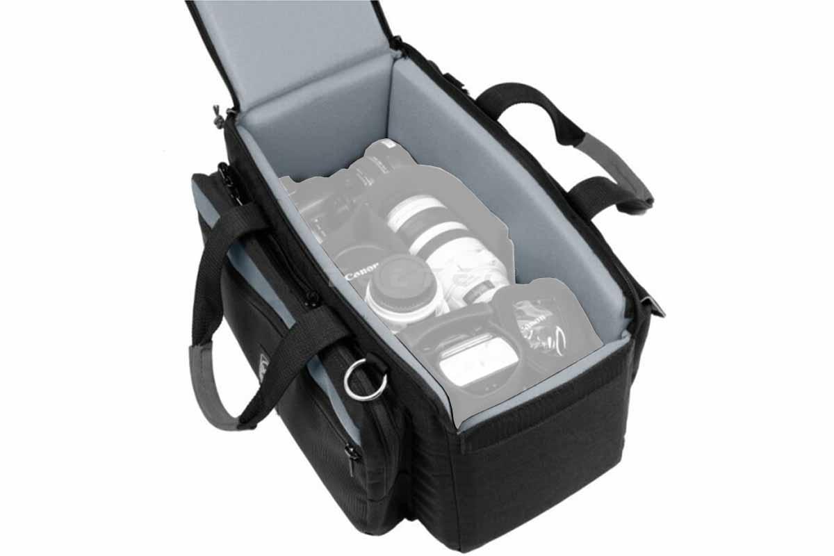 Die Porta Brace CS-DV3Q Kameratasche aus der Porta Brace Camera Special Edition ist für kompakte Camcorder und deren Zubehör konzipiert. Die Tasche besteht aus abriebfestem 1000-Denier Cordura-Nylonmaterial. Dank 8 mm starkem Hohlkammer-Kunsstoff bietet die Tasche maximalen Schutz für die Ausrüstung beim Transport oder bei der Lagerung. Zusätzliche Einschubfächer bieten genug Platz für SD-Karten, Dokumente, Kabel und Weißabgleichskarte. Zwei robuste Stahlringe dienen zur Befestigung des komfortablen, im Lieferumfang enthaltenen Nylon-Schultergurts.