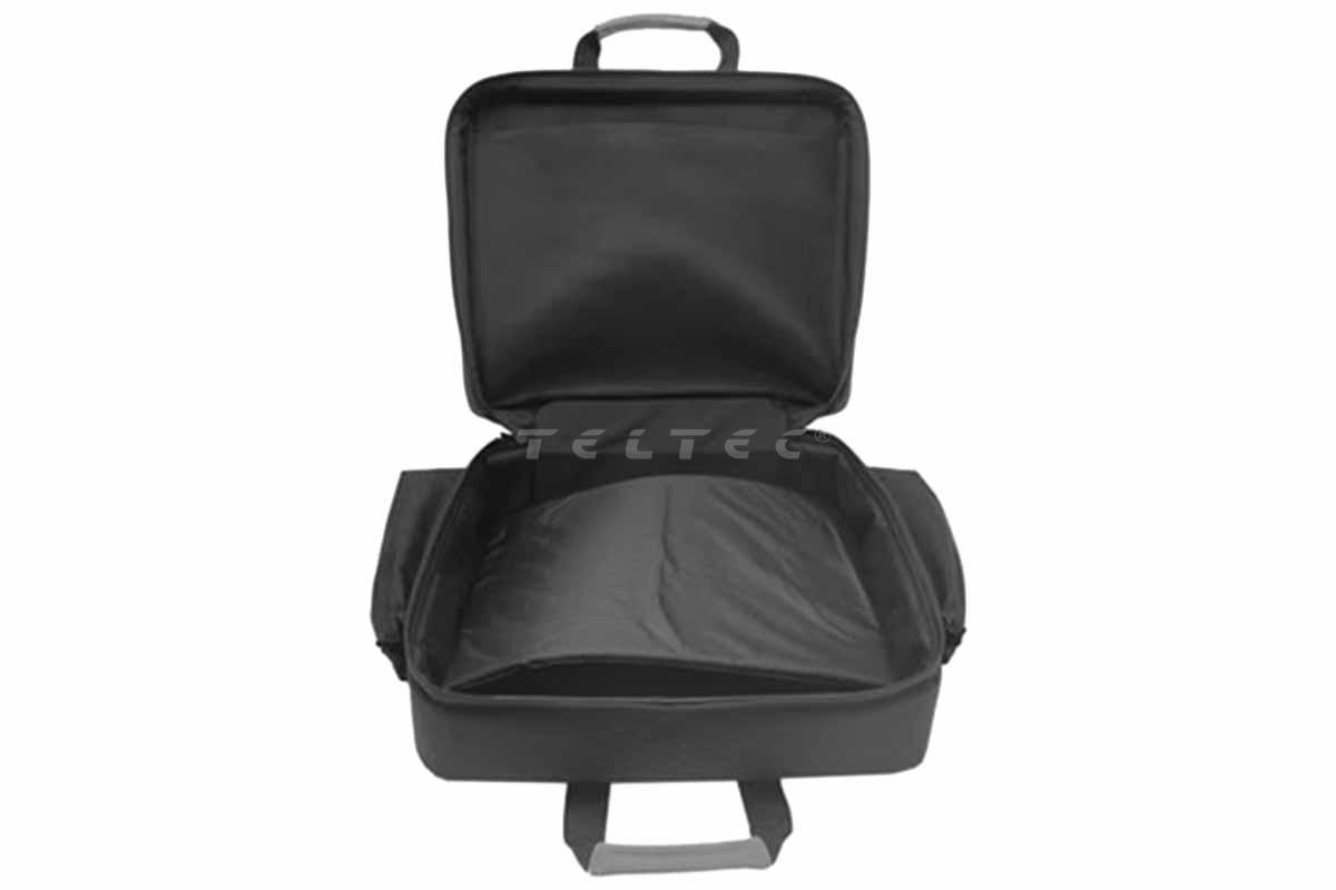 Die Porta BraceLP-LED2 Tragetasche für zwei 1x1 LED-Panels besteht aus wasserfestem 1000 Denier Cordura-Nylon hat eine geschlossener Schaumstoffpolsterung im Inneren und einen dicken U-förmigem Schaumstoff am Boden. Der Innenraum ist mit einer herausnehmbaren Trennwand ausgestattet. Der von oben zu öffnende Reißverschluss ermöglicht einen schnellen Zugriff auf die Leuchten. Die Tasche verfügt über eine Außentasche für Kabel und Batterien, einem weichen, gepolsterten Fach für Filterfolien und zwei seitliche Außenfächer für kompakte Lichtstative. Zwei mit Wildleder bezogene Griffe und der mitgelieferte, wildlederbezogene Schultergurt sorgen für einen bequemen Transport der Tasche.