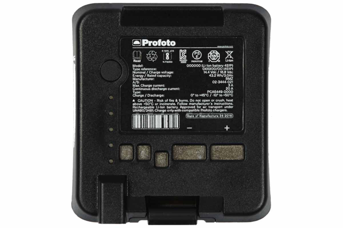 Der Profoto 4S1P Lithium-Ionen Akku ermöglicht voll geladen über 400 Blitze bei voller Leistung mit den B10/B10X/B20 Blitzgeräten und 200 Blitze mit de B10 Plus/B10X Plus/B30 Blitzgeräten. Eine Ladeanzeige zeigt den aktuellen Status des Akkus an. Der Akku ist UN-zertifiziert und kann im Handgepäck mitgeführt werden.