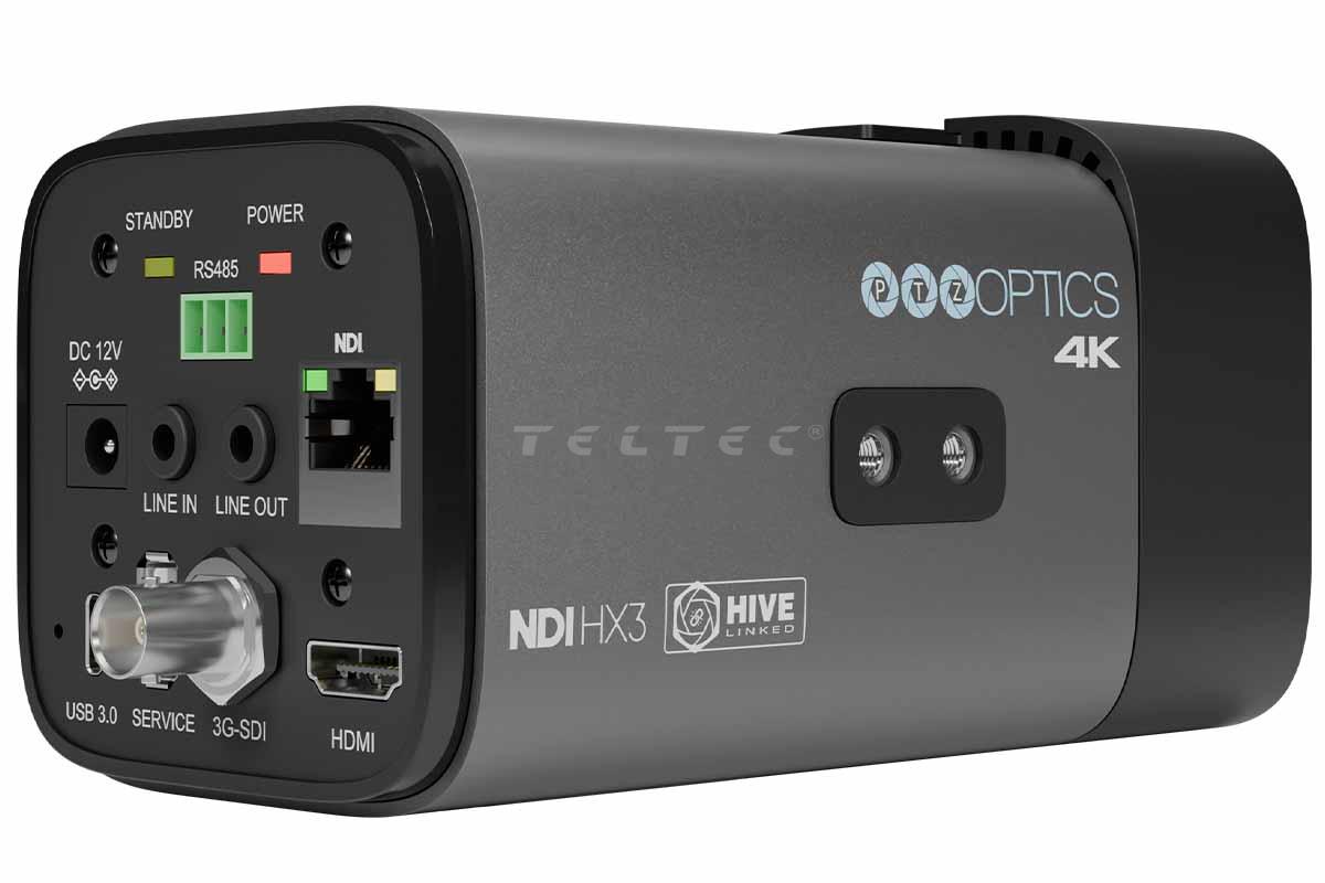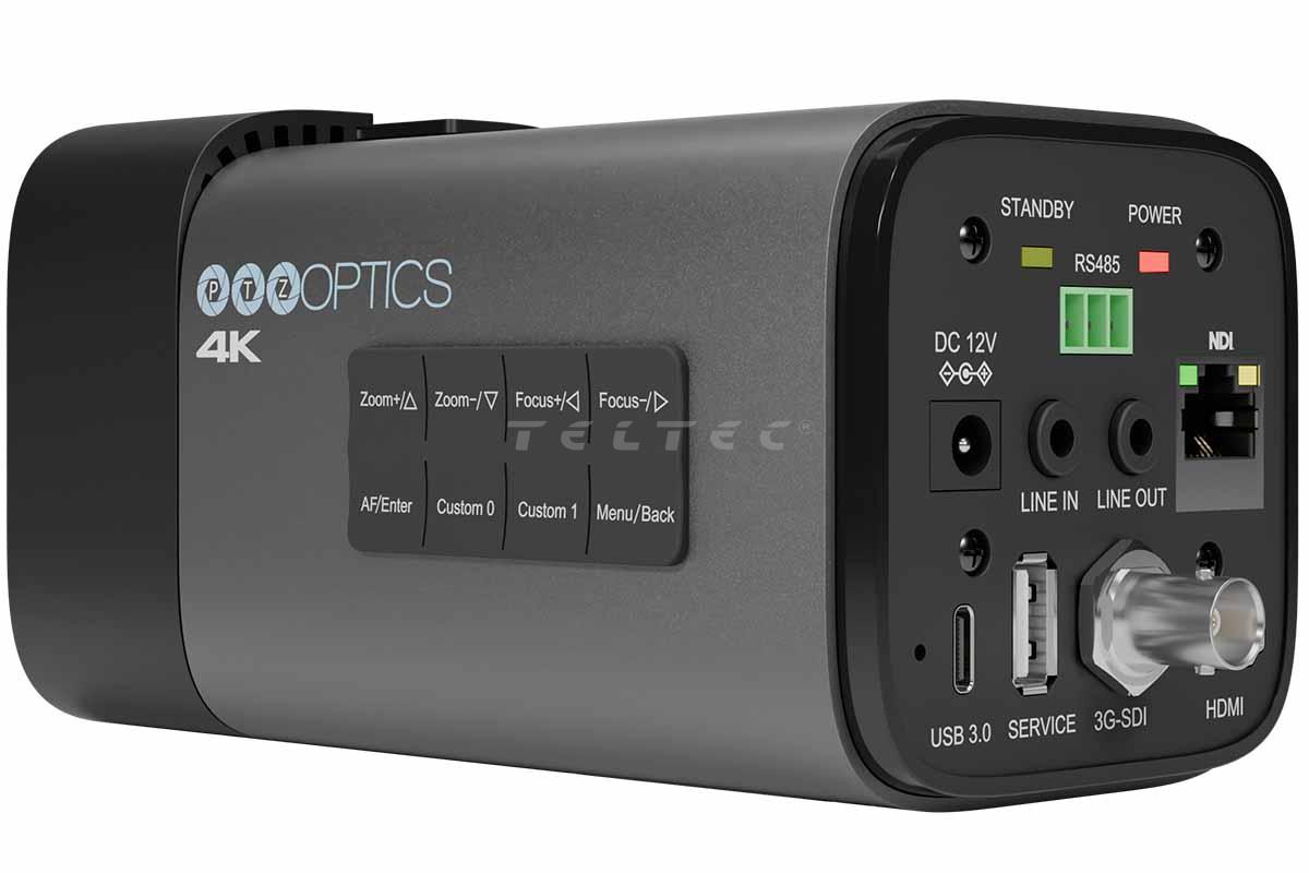 Die PTZOptics Studio 4K 12X (Grau) ist eine 4K@60fps Box-Kamera mit festem Objektiv für Content und Live-Streaming. Sie ist mit 12-fachem optischem Zoom und 16-fachem Digitalzoom ausgestattet. Die Studio 4K verfügt über einen SDI-, HDMI-, USB- und IP-Ausgang und wird nativ mit NDI® HX3 ausgeliefert. Dies ermöglicht eine nahtlose Integration in verschiedene Videoproduktions-Setups, die direkte Verbindung mit einem Live-Produktionsmischer, das Streaming über ein Netzwerk oder die Aufnahme über eine SDI-Schnittstelle.