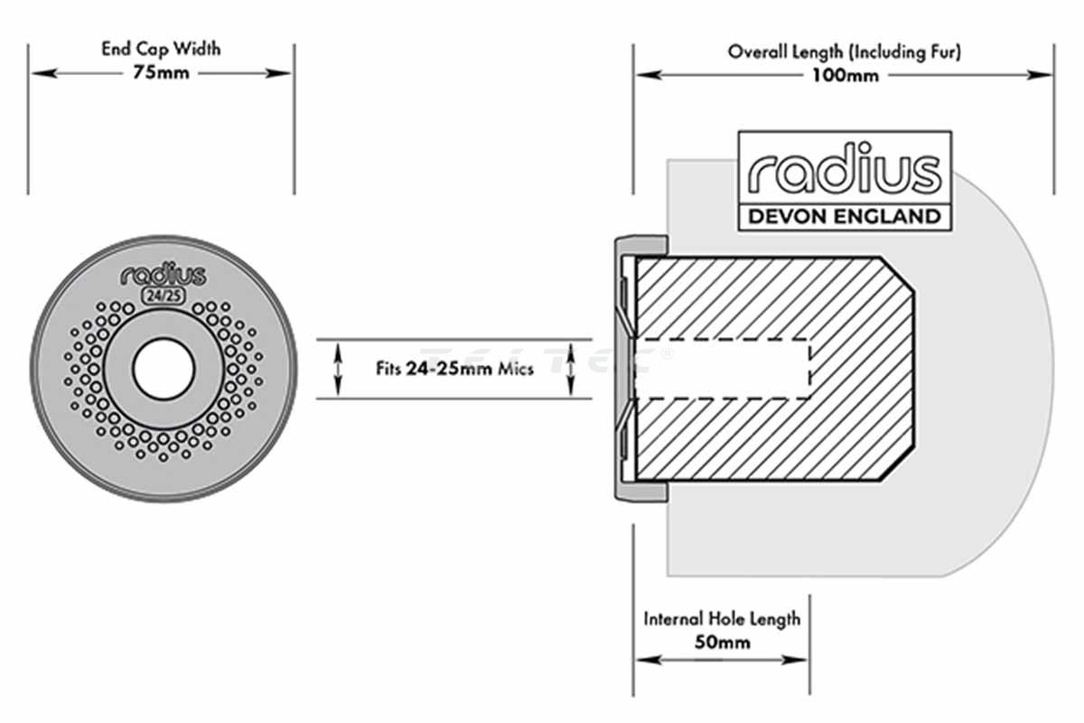 Der Radius Windshields 5 cm Nimbus Windshield (24/25) ist ein aufschiebbarer Windschutz der Größe 5 cm. Mit ihm können Geräusche von leisem bis mäßigem Wind um bis zu 25 dB reduzieren, während gleichzeitig die Klarheit hoher Frequenzen erhalten bleiben. Die aus Gummi gefertigten Endkappen passen genau auf Mikrofone mit 24 - 25 mm Durchmesser. Die Nimbus Windshields haben besondere "Pfefferstreuer"-Öffnungen, um den Luftdruck in Kapselnähe zu verringern. So kann für zusätzliche Klarheit gesorgt werden. Die Nimbus Windschutze sind je mit einem 25 mm langen dunkelgrauen, akustischen Kunstfell und einem porösen, offenzelligen Schaumstoffkern ausgestattet.
